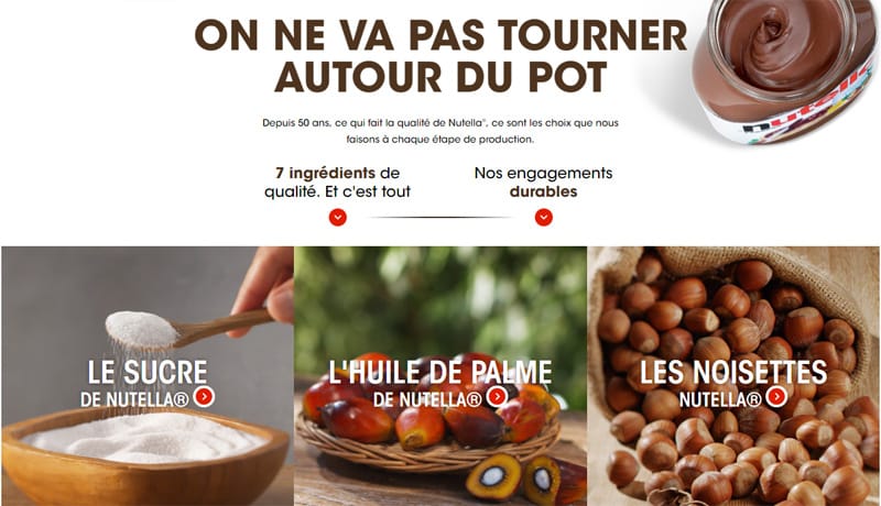 « On ne va pas tourner autour du pot » indique le géant Nutella sur le site web mis en place pour l’occasion. En ce qui concerne l’huile de palme, souvent mise en cause, Nutella explique que cette dernière est d’excellente qualité, provient exclusivement de fruits fraîchement pressés et est traitée à température contrôlée. Selon Nutella, aucun doute n’est permis : « l’huile de palme de Nutella est une huile sûre, comme toutes les autres huiles végétales de qualité« . Selon certains analystes, Ferrero achète pas moins de 185 000 tonnes d’huile de palme chaque année.