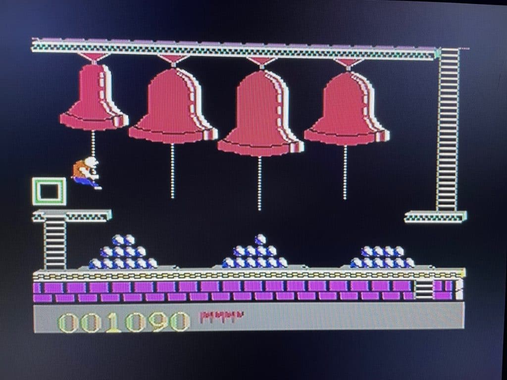 Là aussi, une grosse différence avec Hunchback ; les cordes qui pendent des cloches ne sont pas statiques, vous devez donc vous balancer pour prendre de l’élan et sauter, de plus elles sonnent en accord avec votre balancement et avec un petit son plutôt bien réussi. Durant votre parcours vous devez éviter les chauves-souris qui vous pompent de l’énergie à chaque fois qu’elles vous touchent sauf lorsque vous êtes en suspension sur vos cloches.