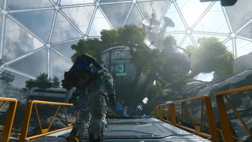 Sur le plan visuel, Pragmata impressionne. Les environnements sont d’une richesse remarquable, alternant entre structures futuristes, paysages lunaires et biomes plus organiques. Chaque zone possède sa propre identité, invitant autant à l’exploration qu’à la contemplation.